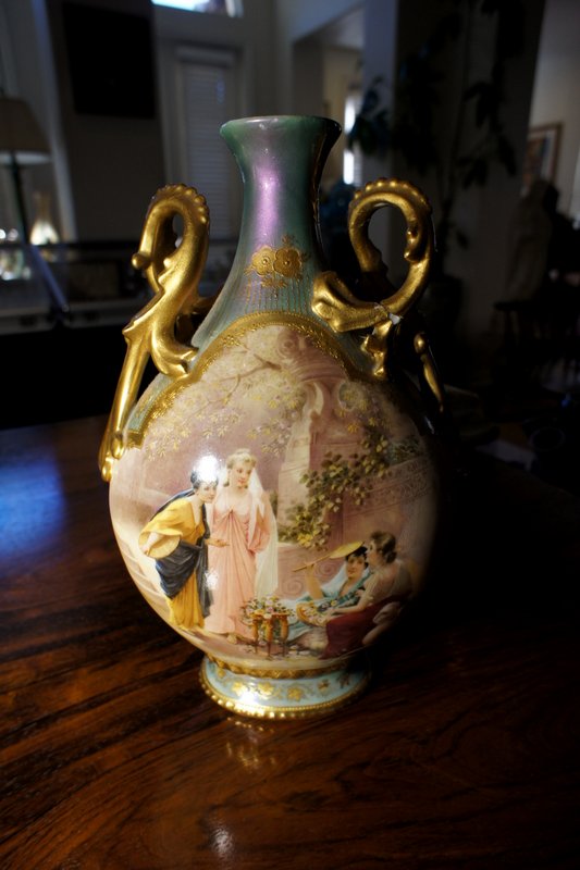 289. Hand Painted Porcelain Vase with Gilt $125