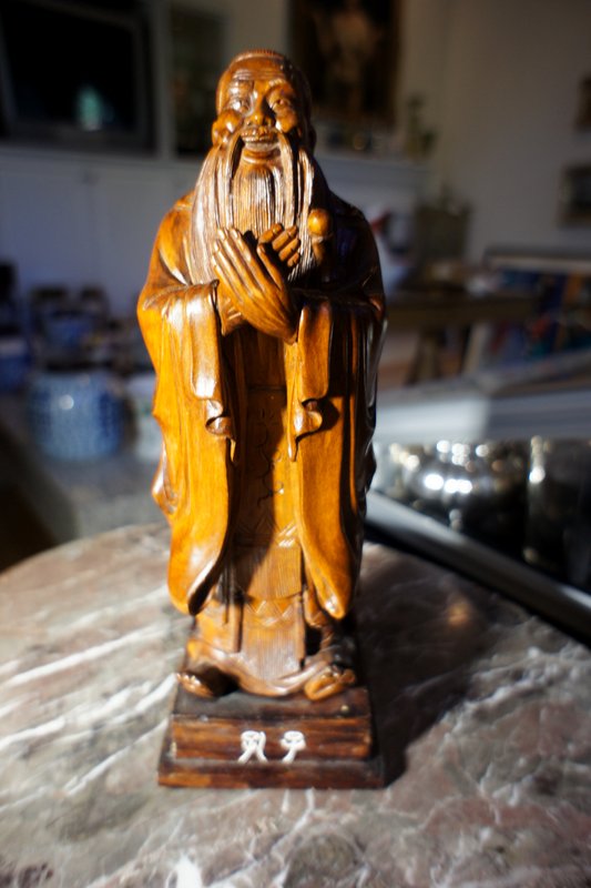 257. Carved Wood Immortal Statue on Wood Base $SOLD