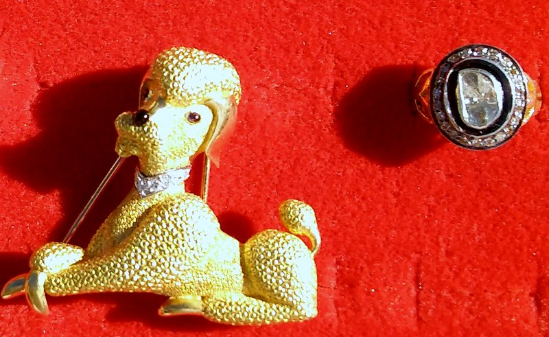 335. 18k Vintage 1960’s French Poodle Brooch with Diamond Collar & Ruby Eyes Signed Made in France $1,500,