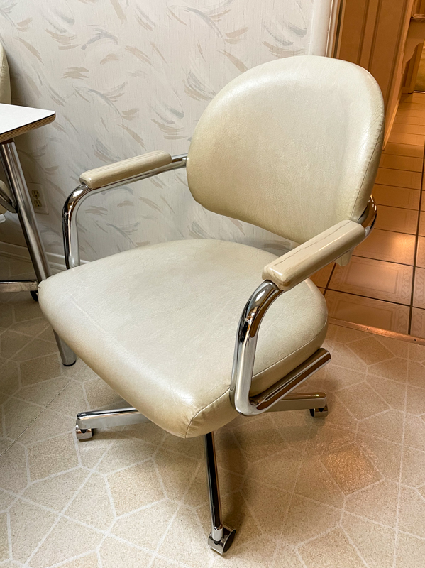 - Vintage dining table w/ 4 wheeled swivel chairs