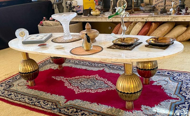 - Mud century regency style marble top coffee table
