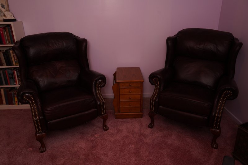 3 Vintage studded brown leather wingback arm chair