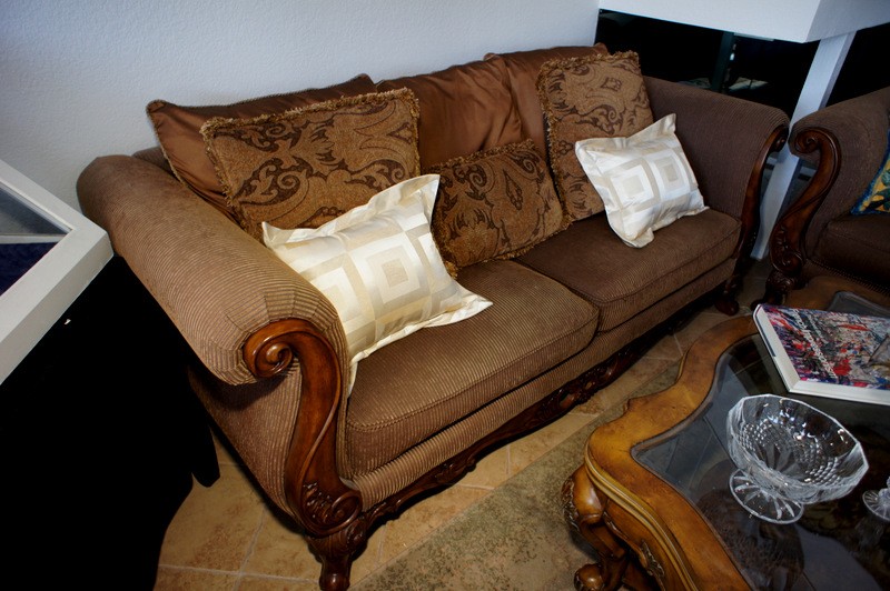 - Tuscan Style Sofa, Love Seat & Coffee Table Set